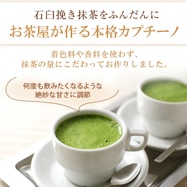 石臼で挽き上げた上質な抹茶の豊かな風味がかおる、クリーミーできめ細かい泡立ちの本格カプチーノ。