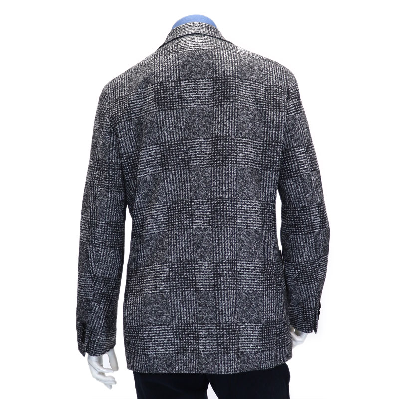 DETAIL 抜群のフィット感をもつ パットレスショルダー サイドベンツ仕様 きれいにナチュラルシェイプされたウエストシックなナットボタン 袖は重ね4個ボタン仕様 やわらかな身返し 肩パットをいれないやわらかな肩 左右に内ポケットを装備の総裏仕様